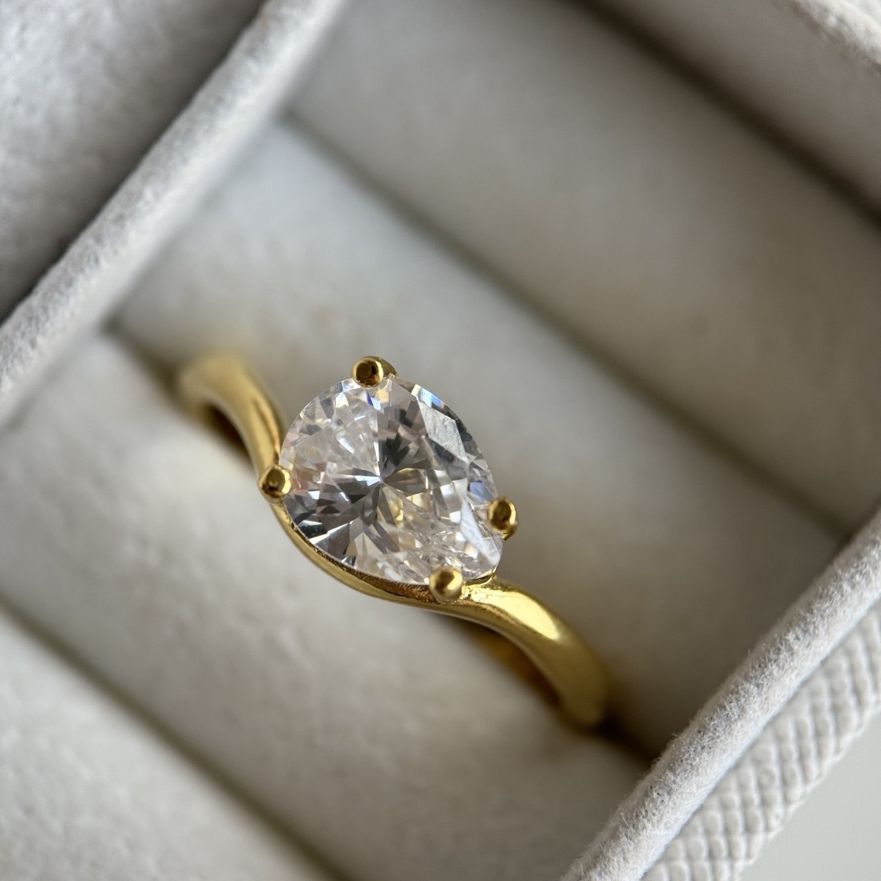 Ev Damla Kristal Taş Yüzük /925 Gümüş