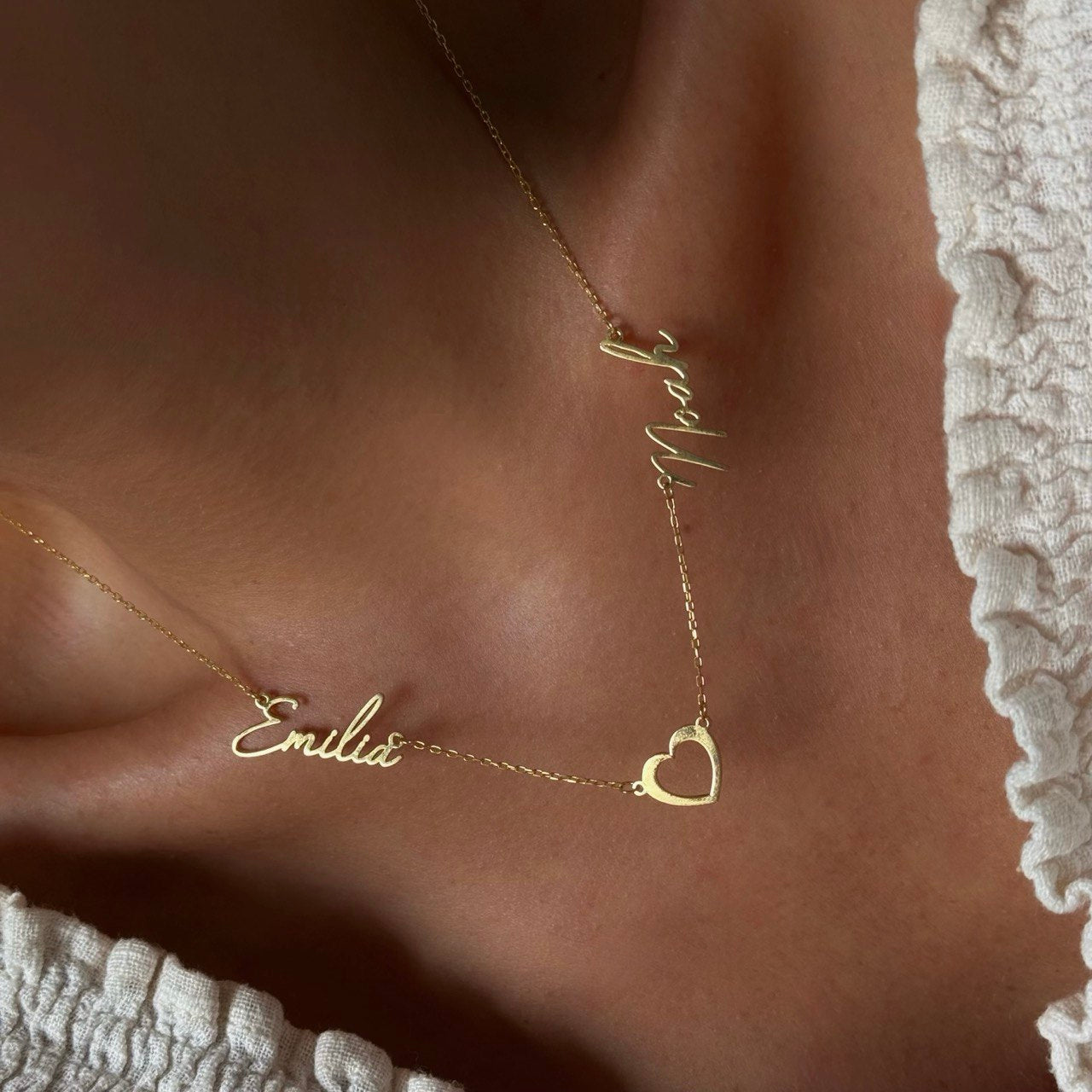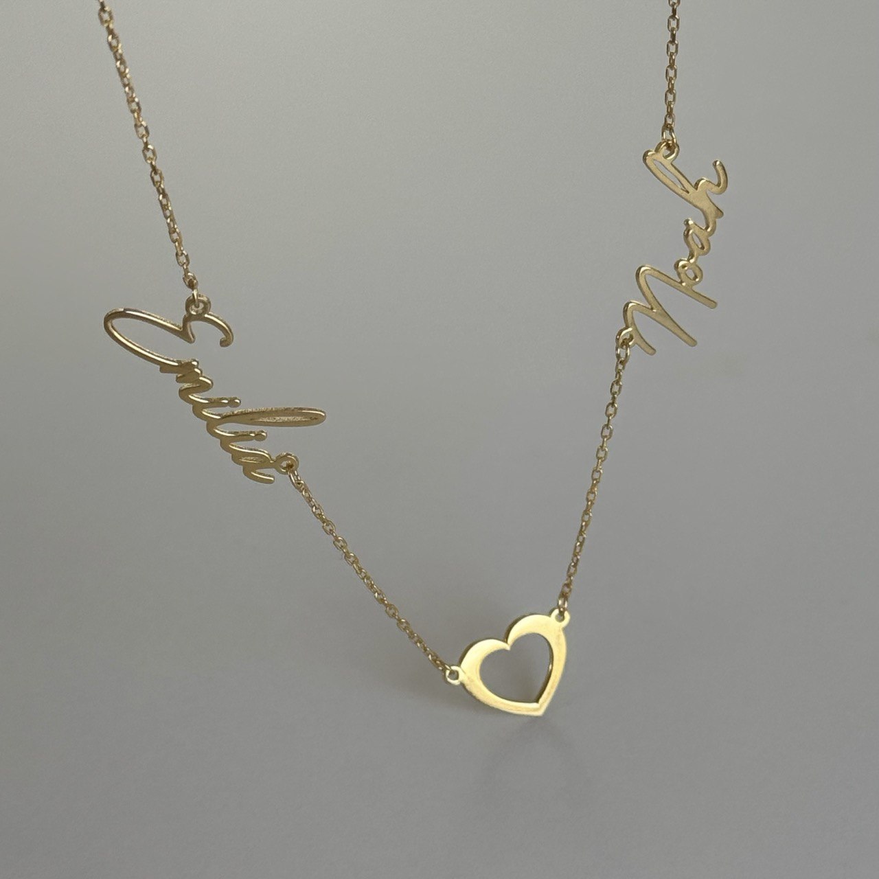 İki İsim Boş Kalp Kolye /925 Gümüş
