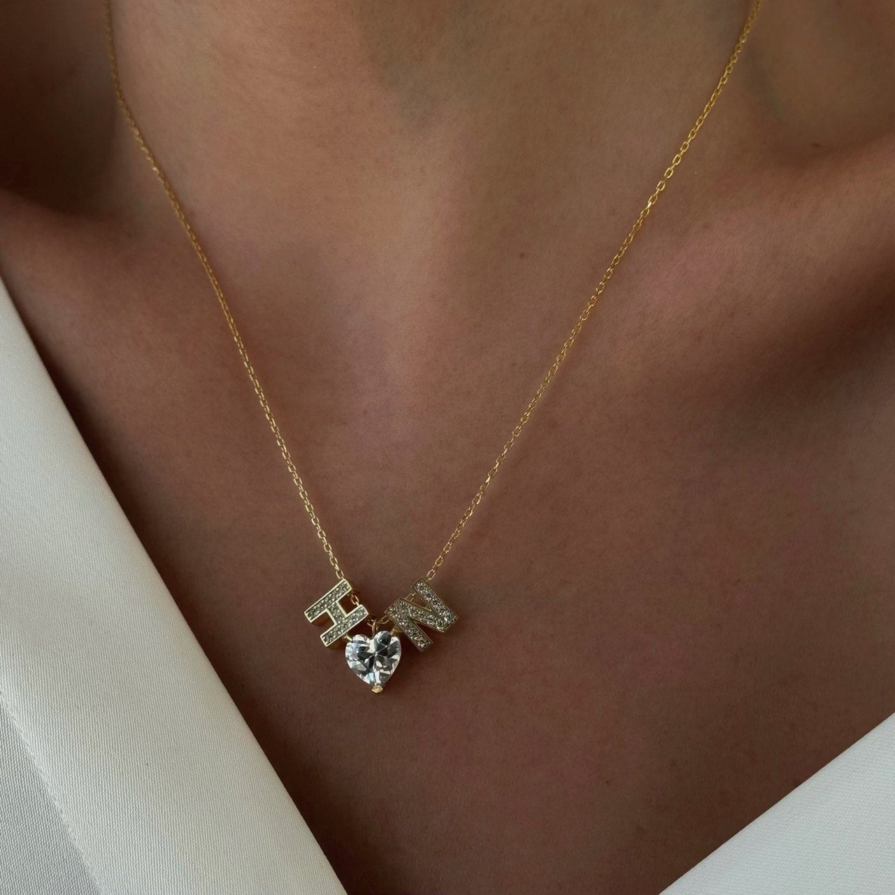 Kalp çift harf / 925 Gümüş