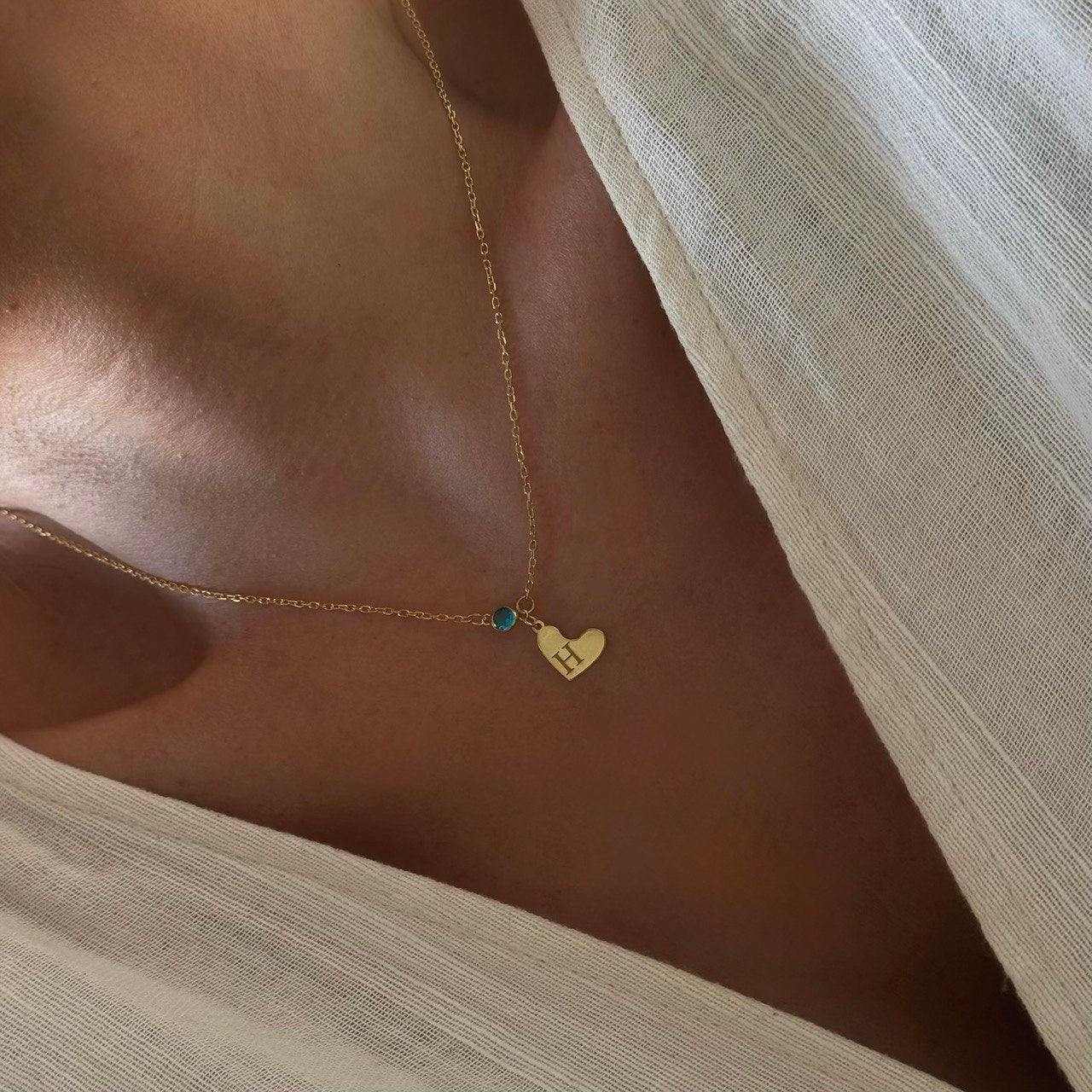 Kalpli Harf-Doğum Taşı Kolye /925 Gümüş