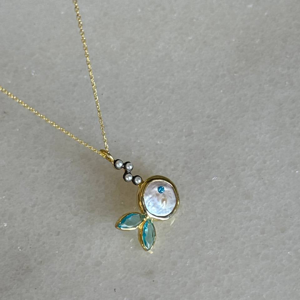 Oval Sedef Balık Kolye / 925 Gümüş