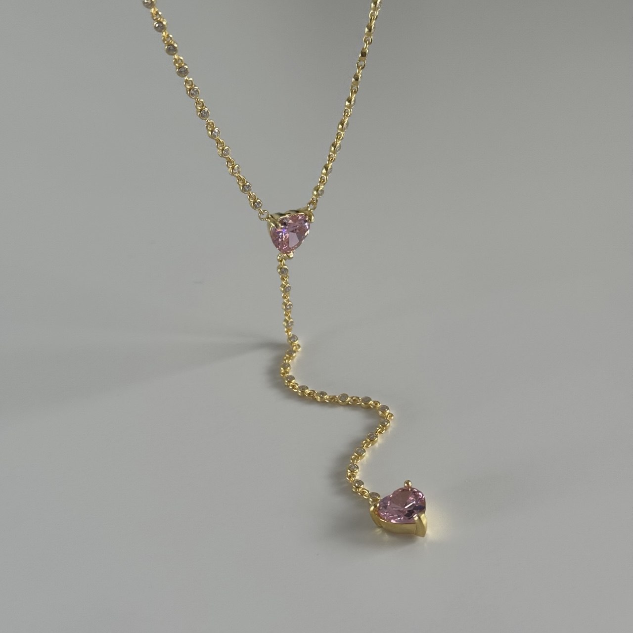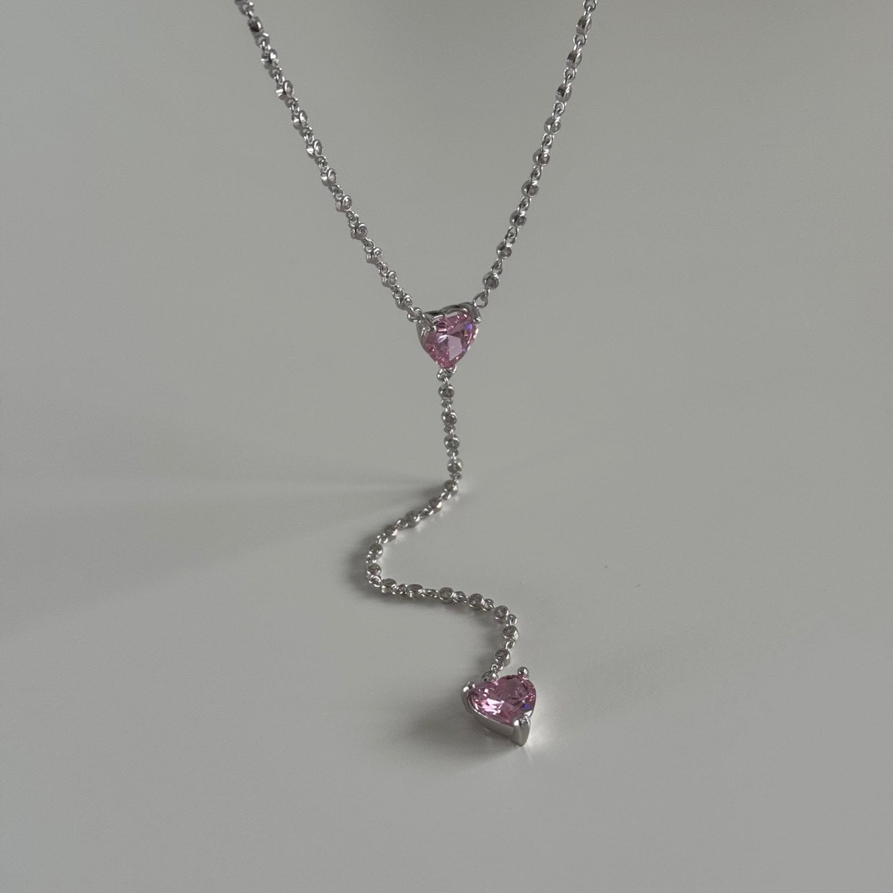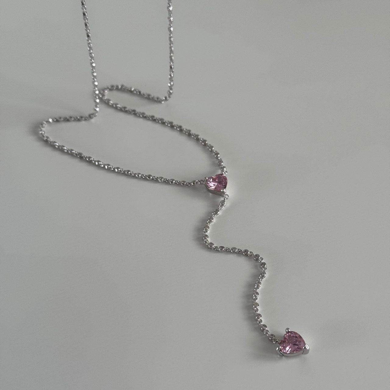 Pembe Kristal Kalp Y Kolye /925 Gümüş