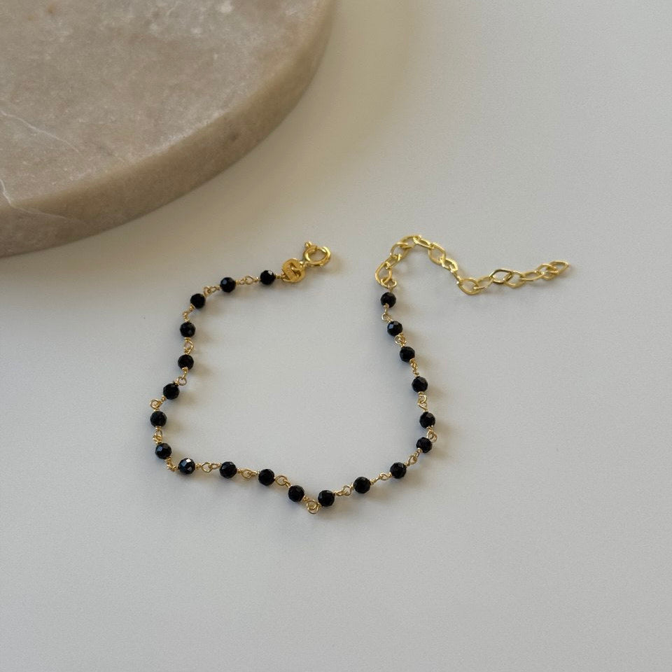 Siyah Kristal Bileklik /925 Gümüş