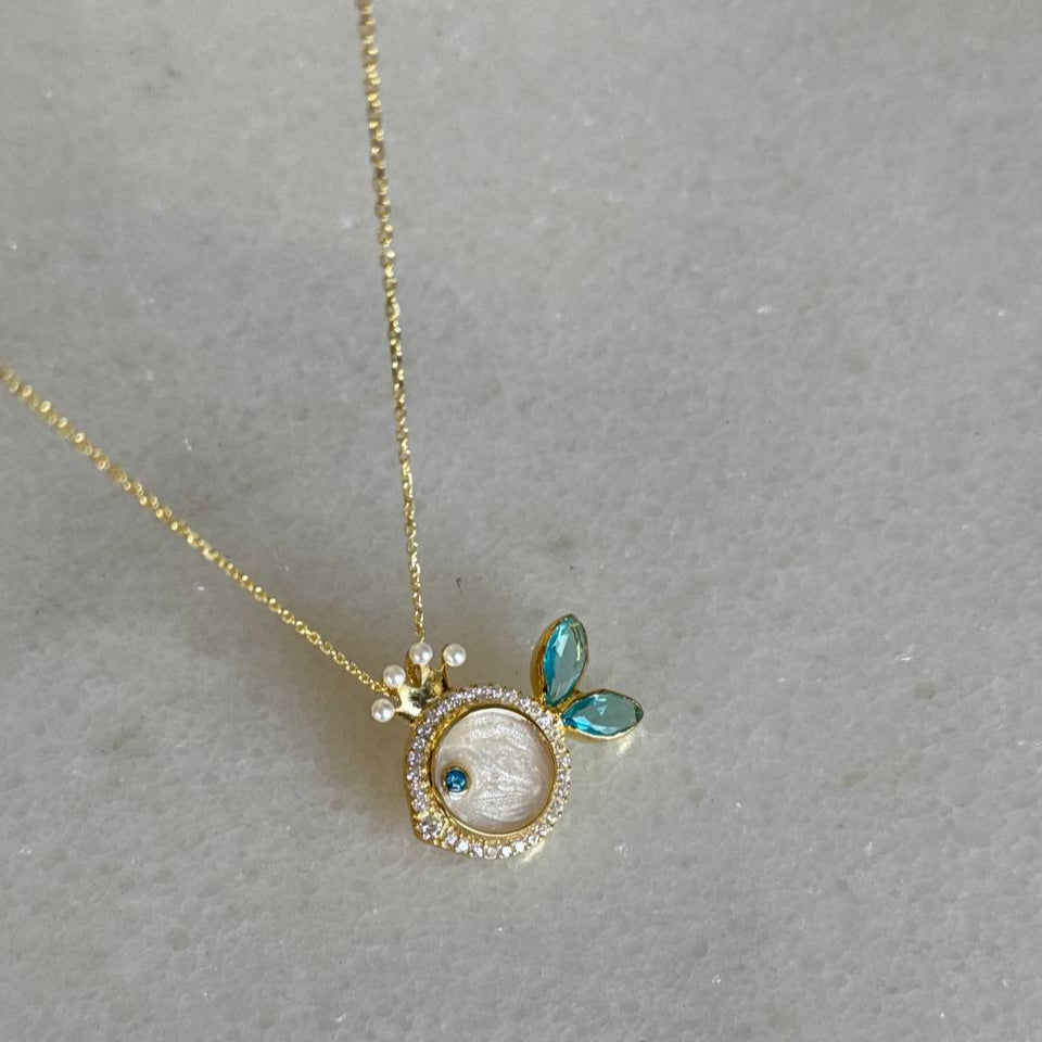 Ev Taşlı Sedef Balık Kolye / 925 Gümüş