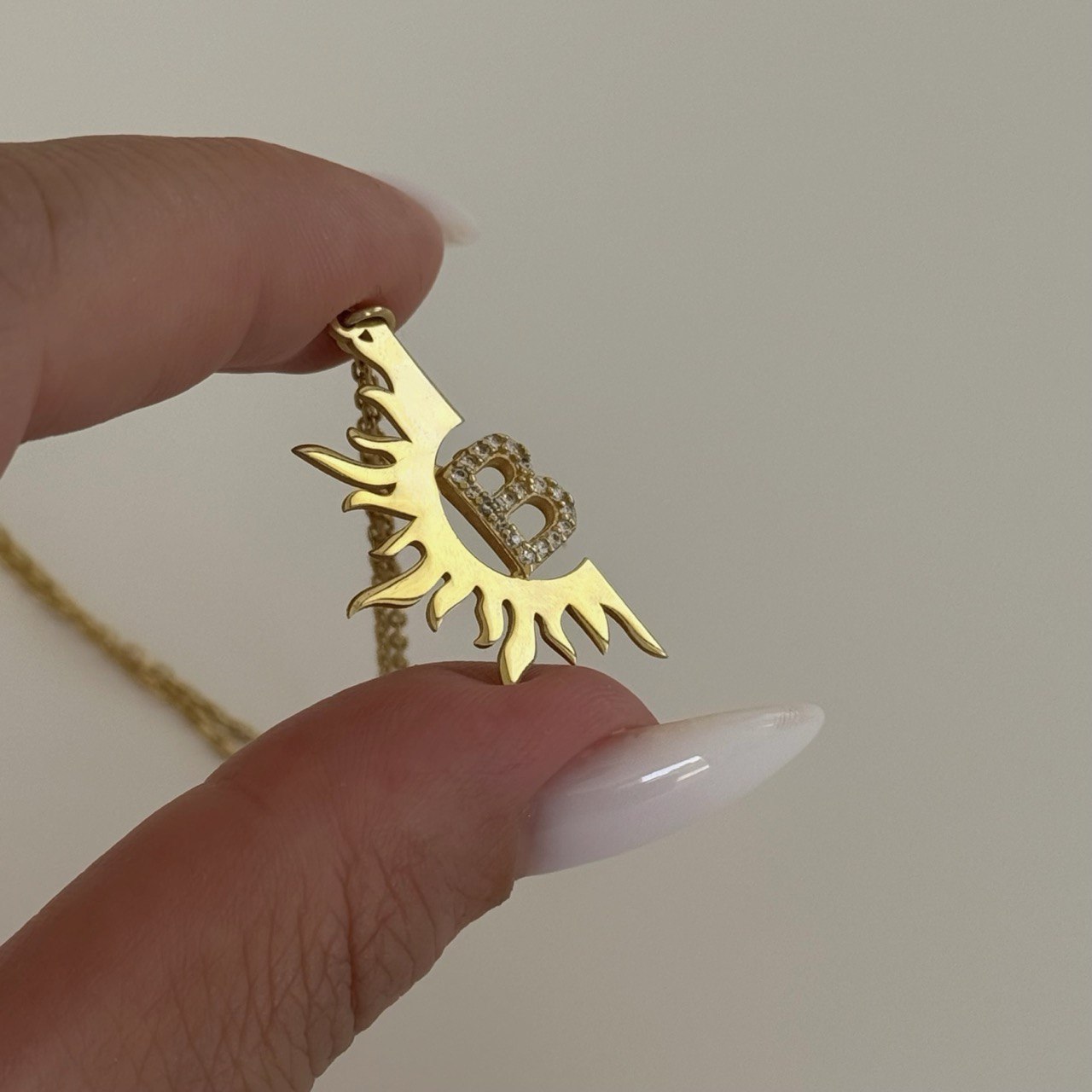 Yarım Güneş-Harf Kolye / 925 Gümüş
