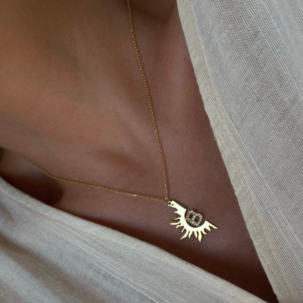 Ev Yarım Güneş-Harf Kolye / 925 Gümüş
