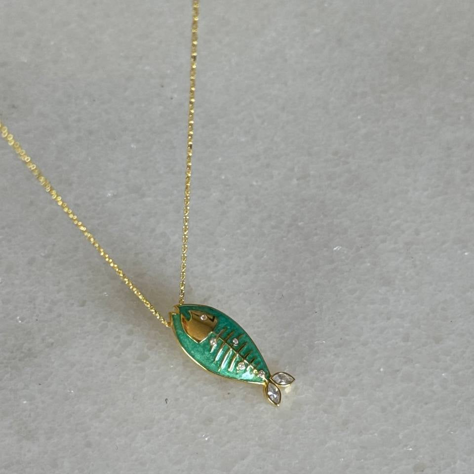 Yeşil Pırıltı Balık Kolye / 925 Gümüş