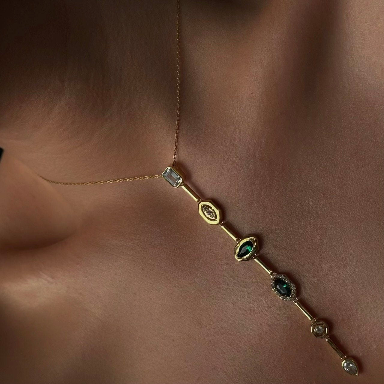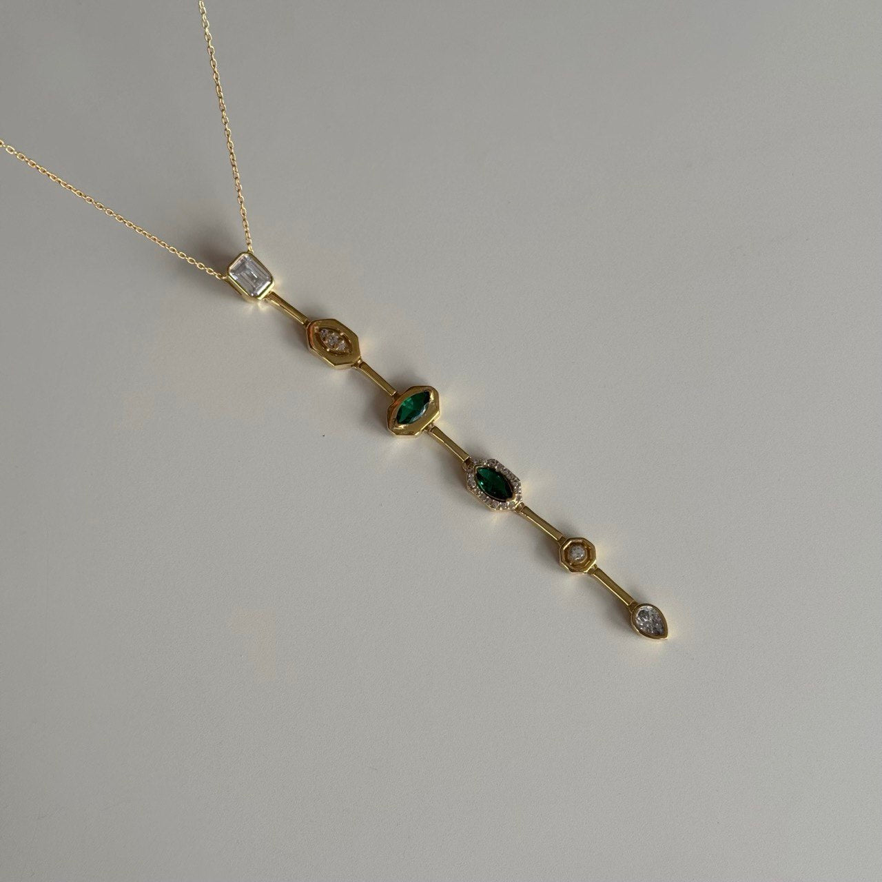 Yeşil Renk Taşlı Y Kolye / 925 Gümüş