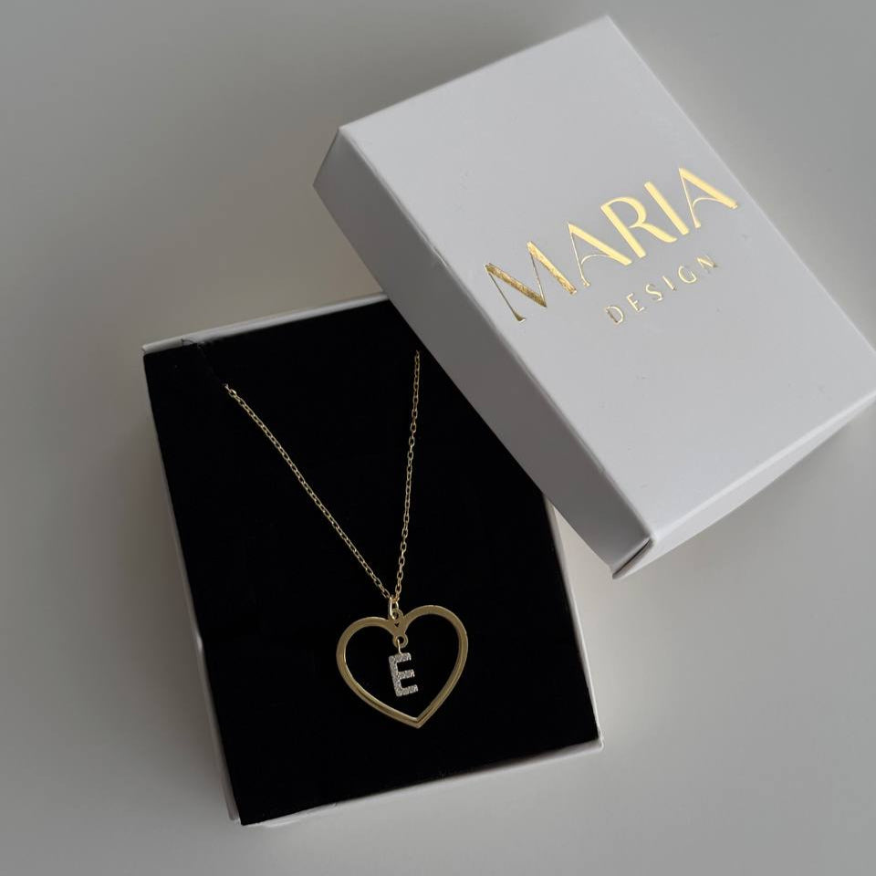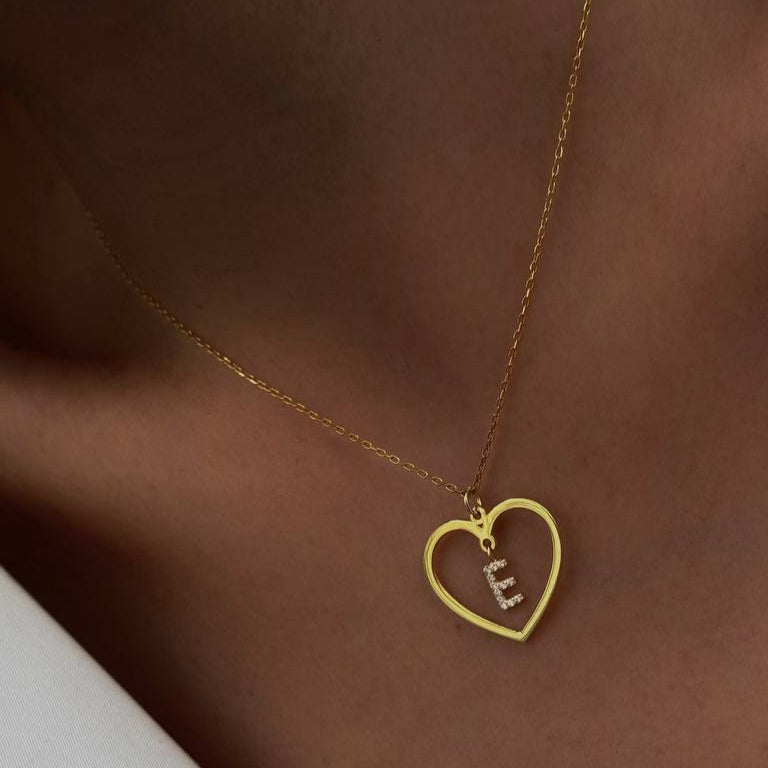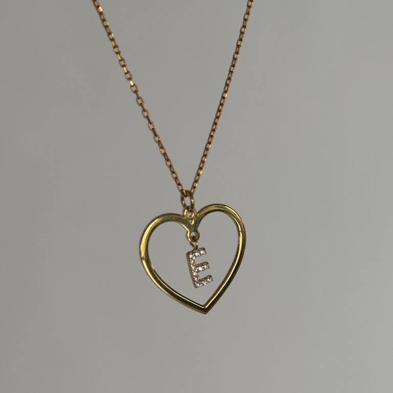 Ev Zirkon Harf Kalp Kolye / 925 Gümüş