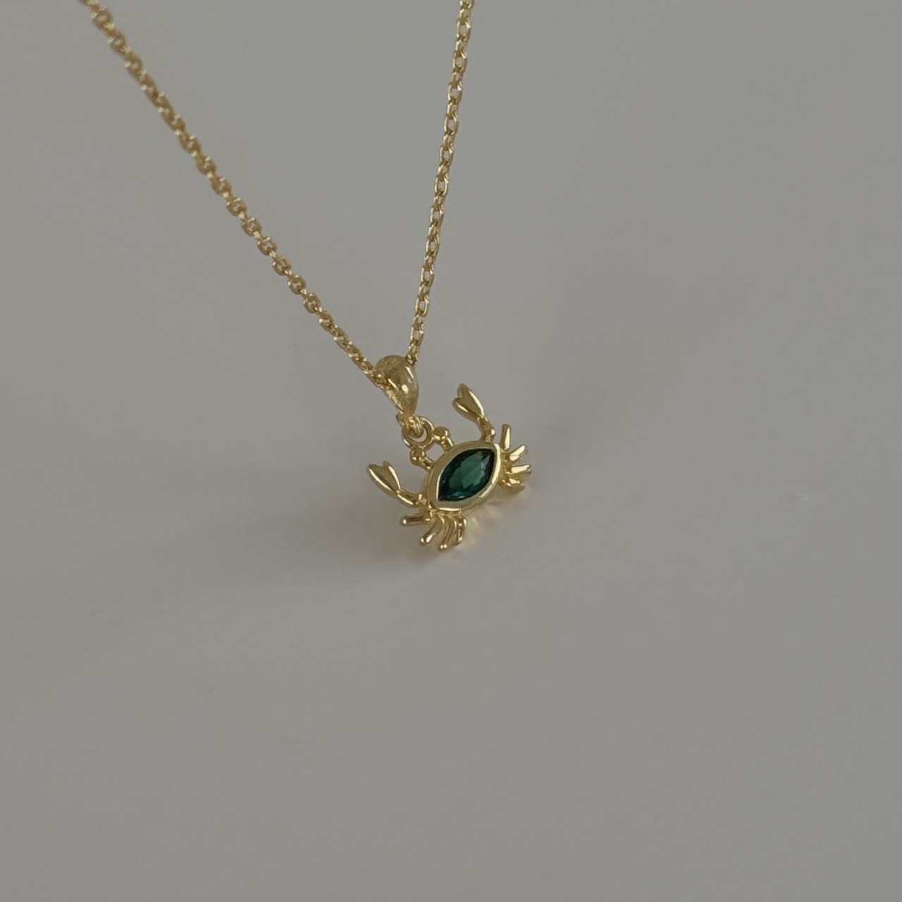 Zümrüt Yeşili Kristal Yengeç Kolye /925 Gümüş